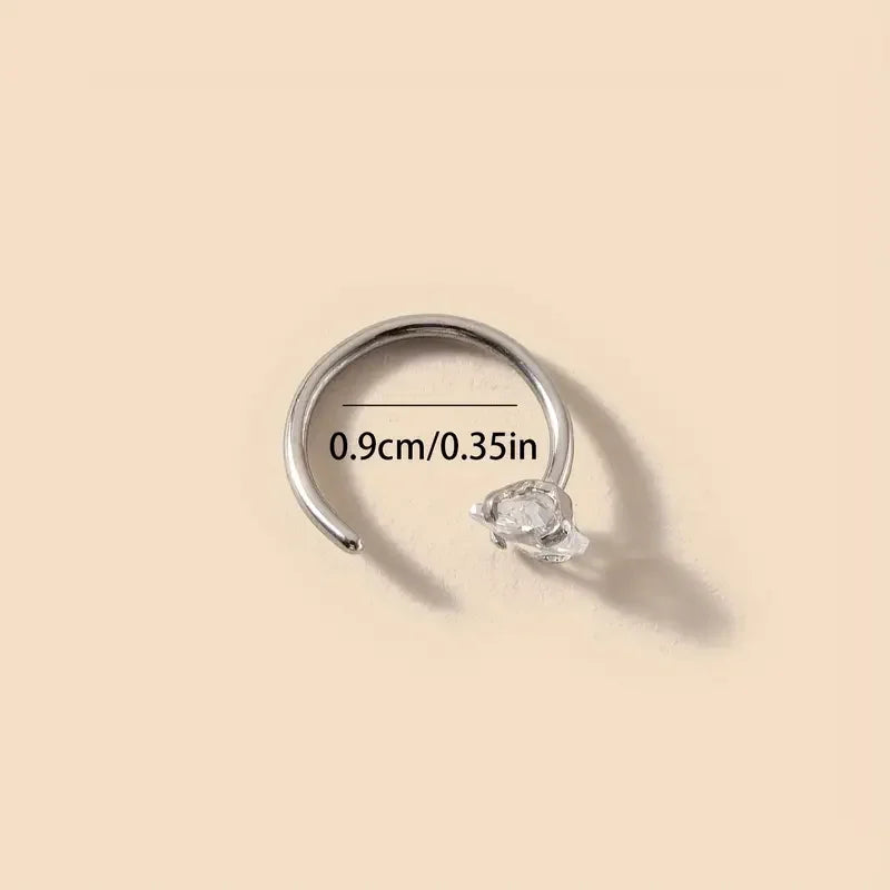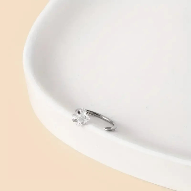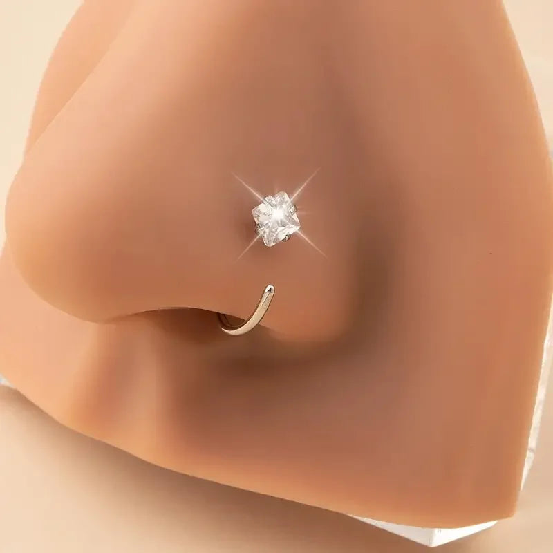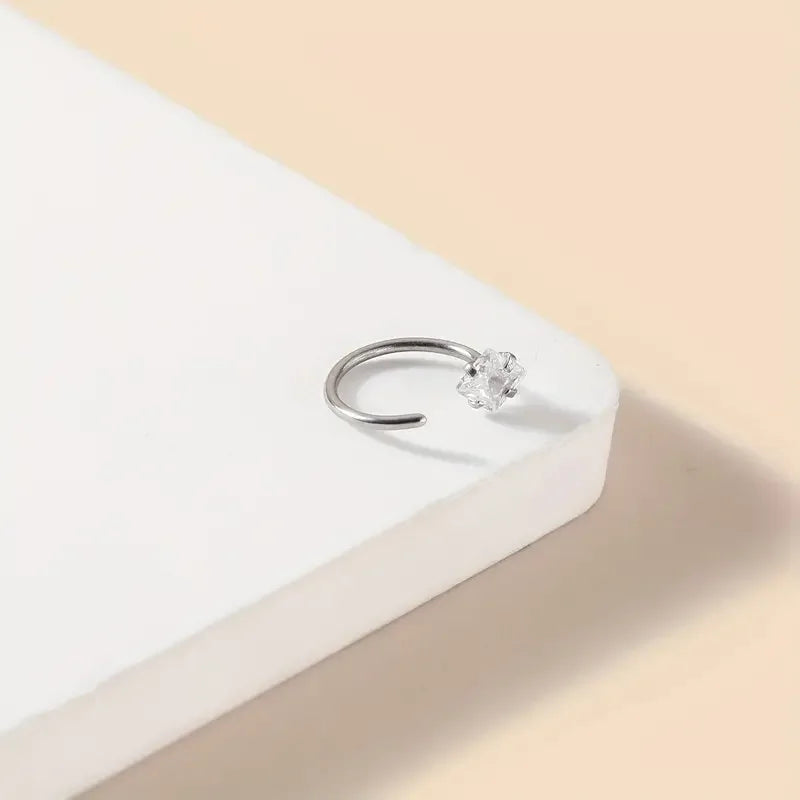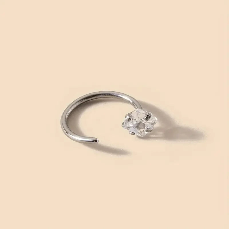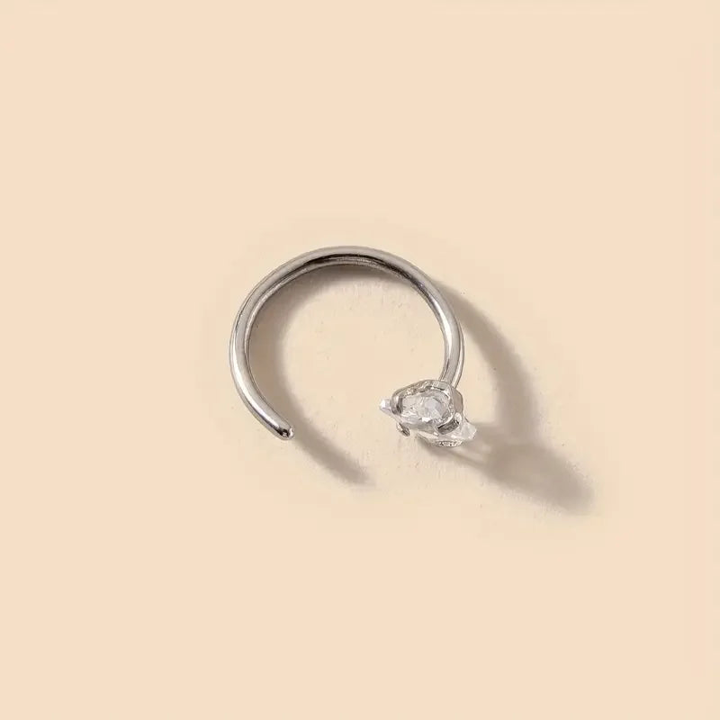 Ce piercing de nez apporte une touche de sophistication discrète à votre look. Le zircon capte la lumière avec élégance, créant un effet lumineux et raffiné qui sublime votre visage sans effort.