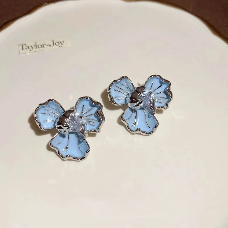 Laissez-vous charmer par les boucles d'oreilles Chamy, une création rétro élégante qui célèbre la beauté des fleurs bleues et le charme vintage.