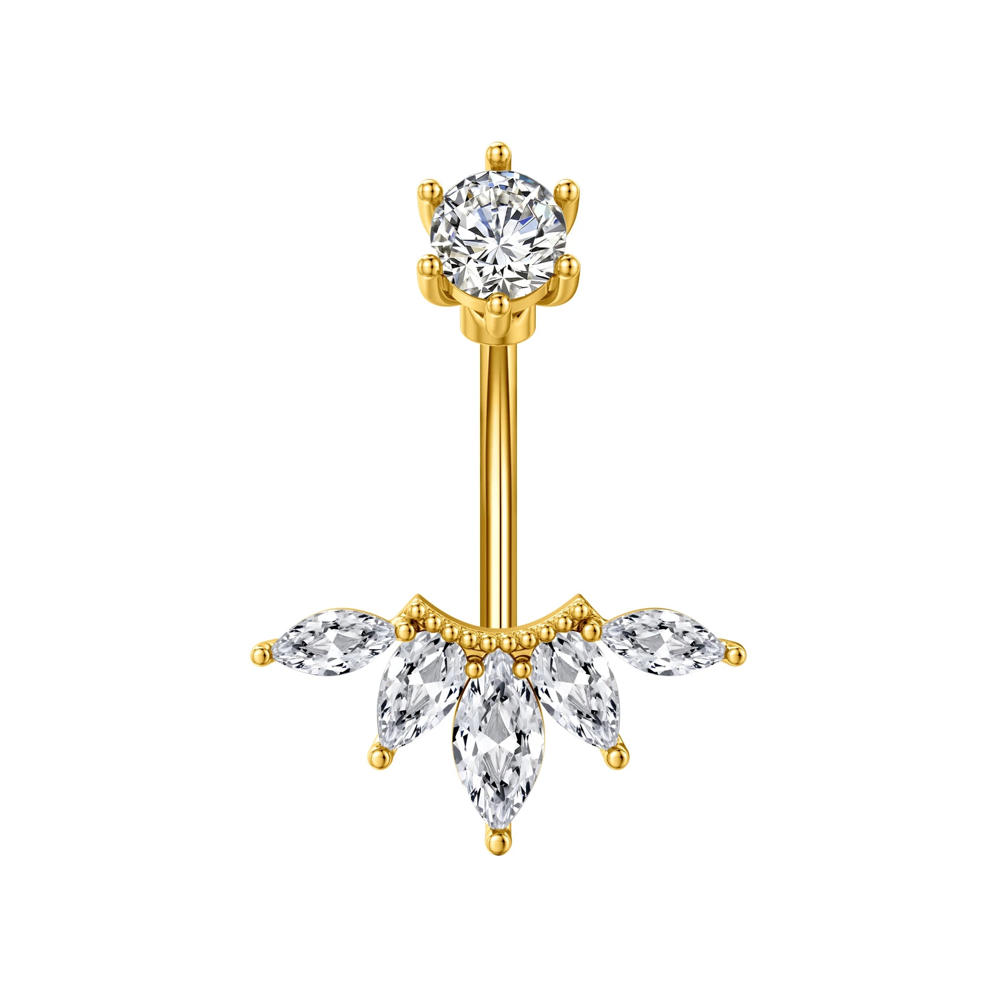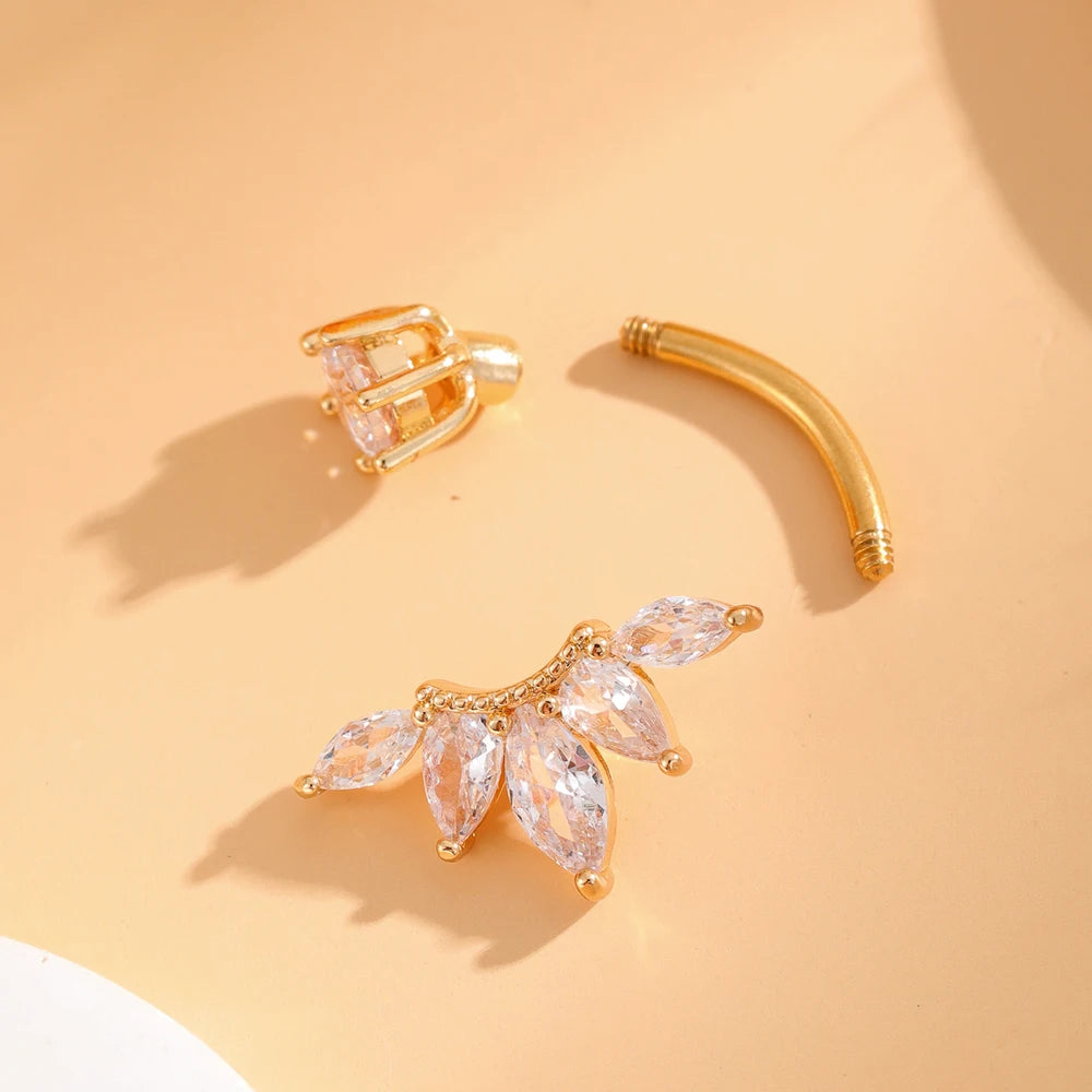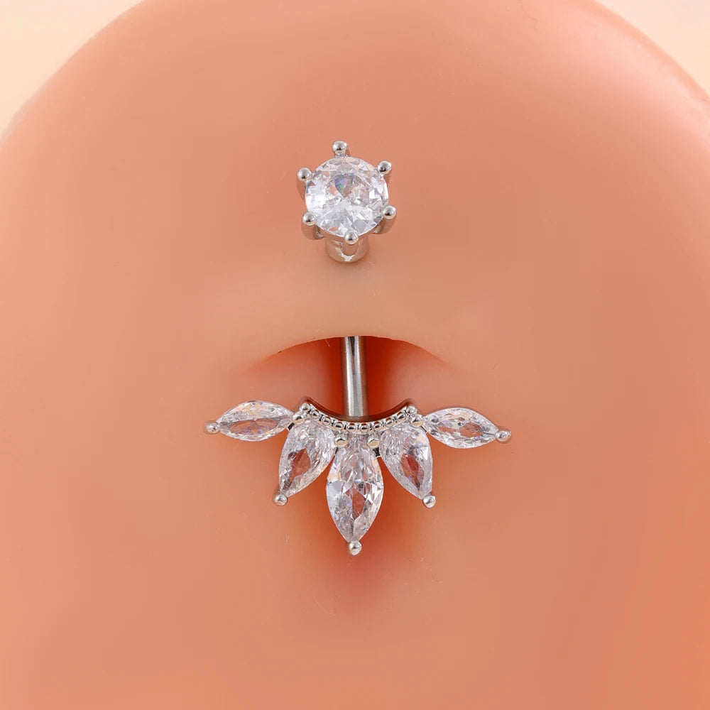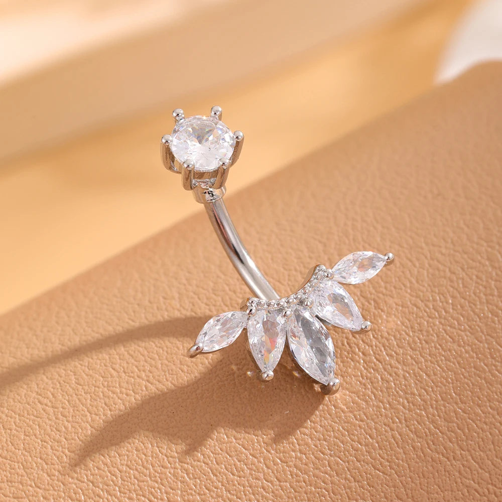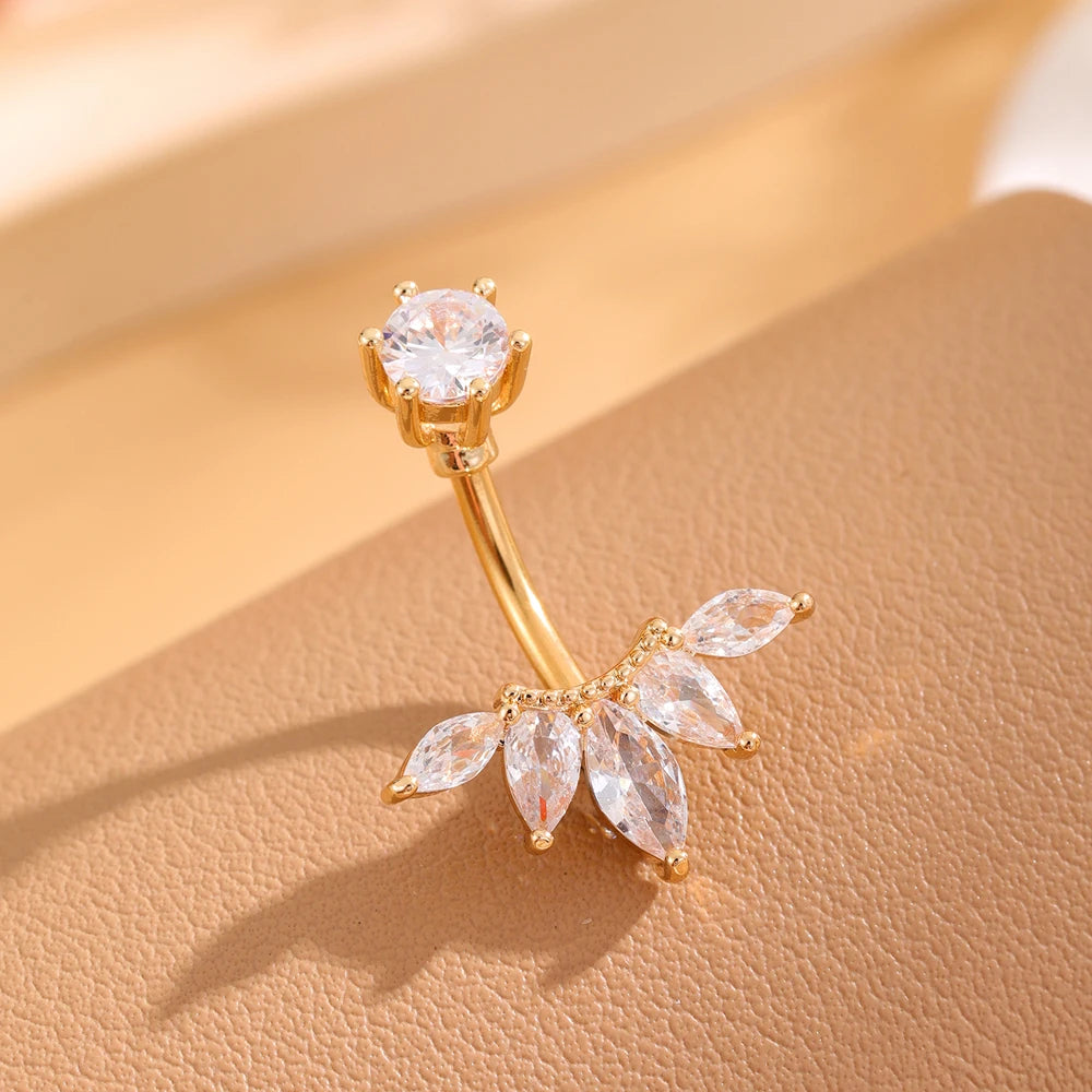 Ce piercing de nombril apporte une touche de féminité et de glamour à votre silhouette. Son design floral orné de cristaux CZ et sa finition dorée en font un accessoire idéal pour sublimer votre look avec élégance, que ce soit à la plage, en soirée ou au quotidien.