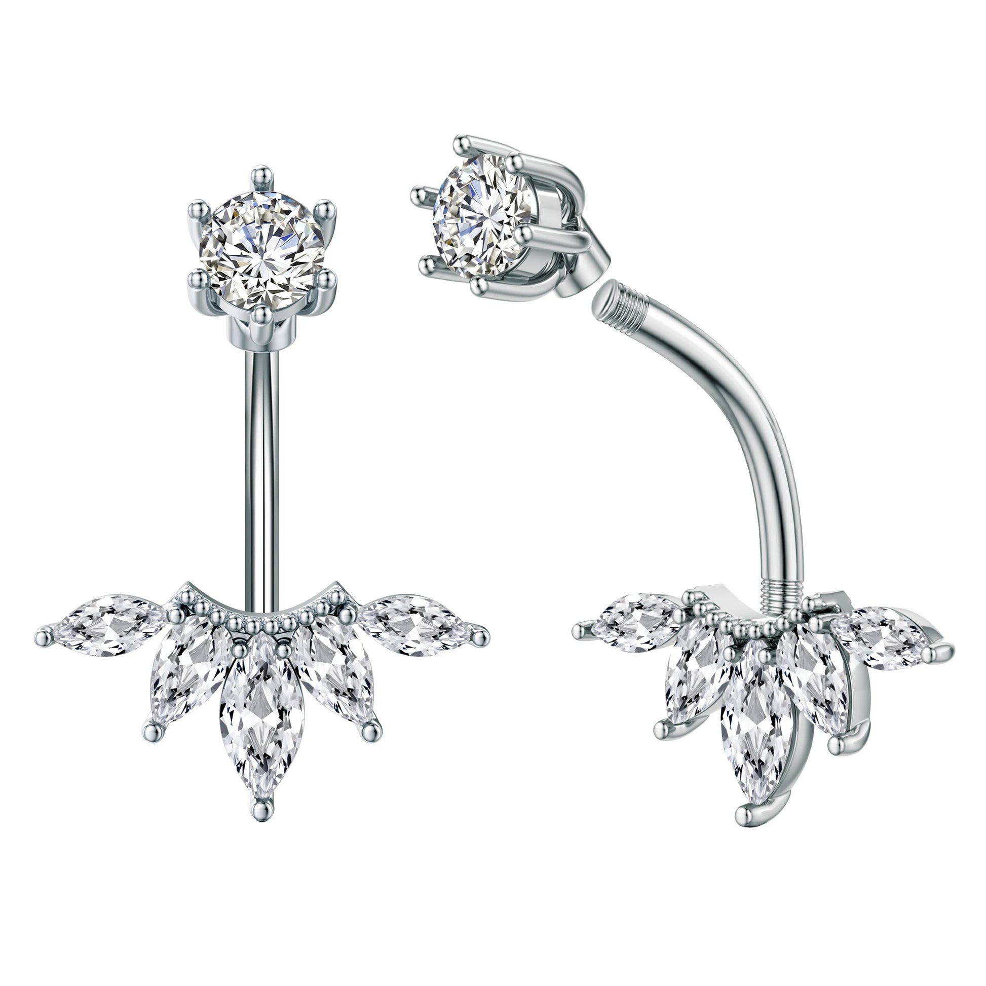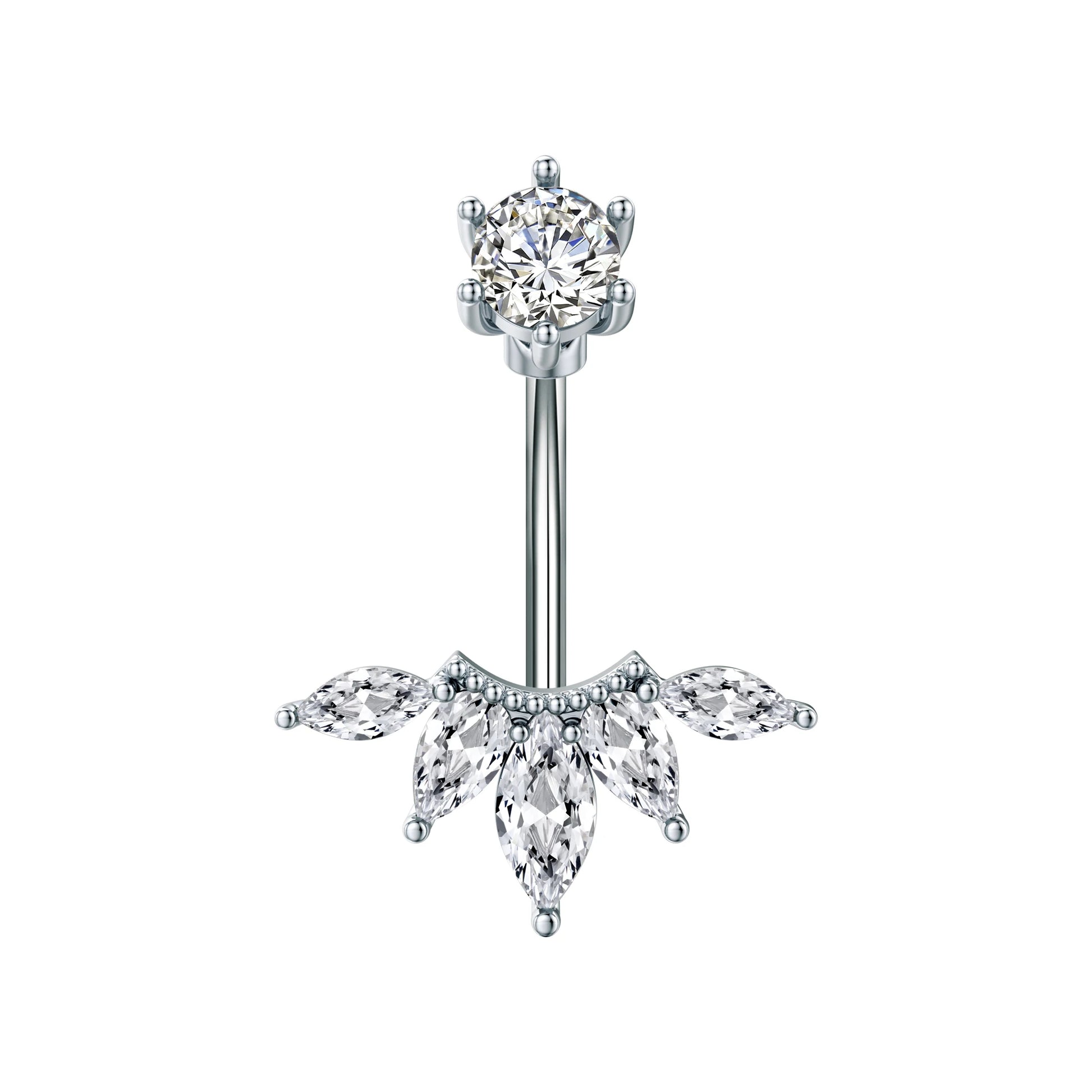 Sublimez votre silhouette avec ce piercing de nombril incurvé en acier inoxydable orné d'une fleur délicate et de cristaux CZ scintillants. Piercy incarne l'élégance florale avec une touche de brillance pour un look à la fois sexy et raffiné.